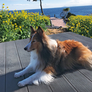 ▲宿「ラブリーワンズ」の看板犬は、おしゃれなオーストラリアン・シェパード犬