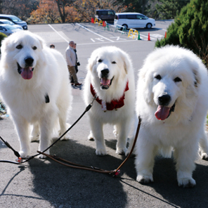 ▲小室山散歩中の優しい3 頭のピレニーズ犬