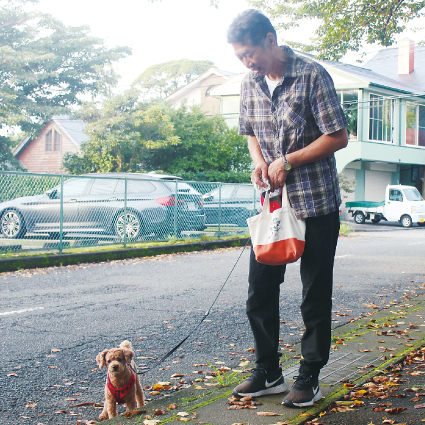 ▲グランパル公園前にてお父さんと、ブルーちゃん11 才のシュナウザー犬