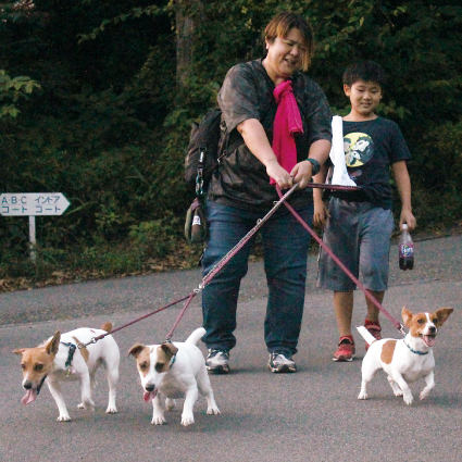 ▲ジャック・ラッセル・テリア犬のキナコちゃん、モナカちゃん、ワラビちゃん