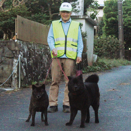 ▲お母さんと一緒の頼もしい柴犬アイバくんは2 才です
