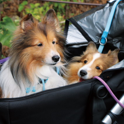 ▲フラワーパークで会ったシェルティー犬の右ココくん5 才・左チャロくん9 才