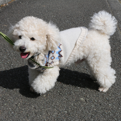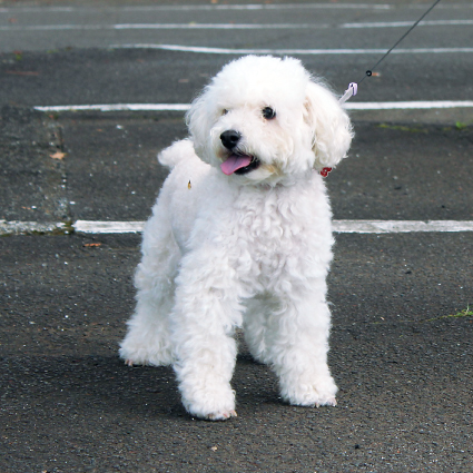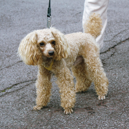 ▲オシャレ・ヘアーの凛太郎くんは、1 才のトイプードル犬です
