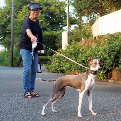 ▲お洒落なネックレスが似合うアンリくん2 才、イタリアン・グレイハウンド犬