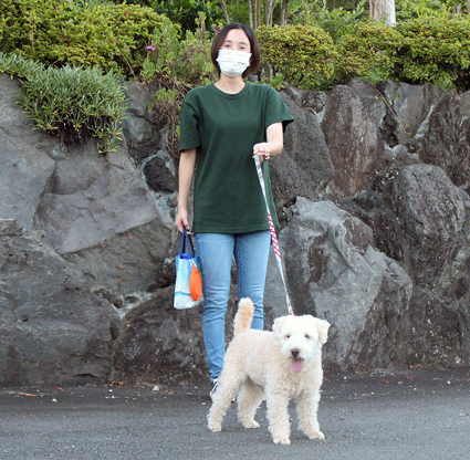 ▲城ヶ崎海岸フラワーガーデンを散歩のルーシーちゃん