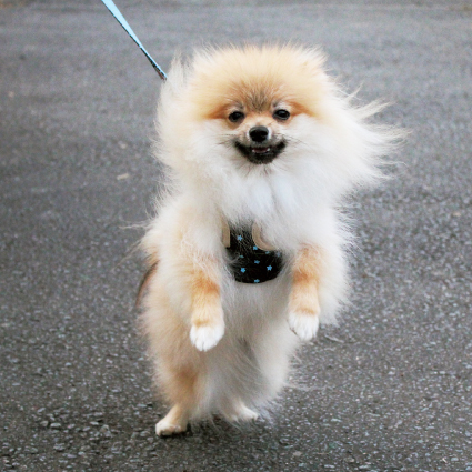 ▲レオくんは6 ヶ月、体重1.7k の可愛いポメラニアン犬、今日も元気いっぱいのお散歩です