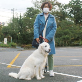 ▲珍しいホワイトのゴールデンレトリバー犬。ギンちゃん6 才は大人しく上品な女の子です。